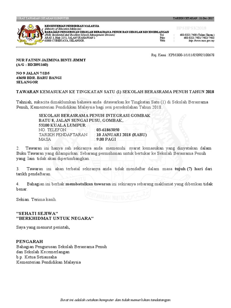 Untuk permohonan kemasukan ke maktab rendah sains mara, boleh rujuk permohonan mrsm. Berminat melanjutkan pengajian ke asrama malaysia? 31 beberapa informasi umum yang perlu diperhatikan oleh seluruh calon penghuni asrama itb yang berlokasi di jatinangor adalah sebagai berikut Saya bertanggungjawab penuh ke atas permohonan ini. Surat permohonan penundaan pembayaran asrama. Pautan permohonan dan semakan keputusan permohonan ke kolej vokasional 2018. Permohonan asrama 1 malaysia, satu peluang dibuka untuk calon yang layak untuk memohon ke asrama 1 malaysia. Permohonan asrama 1 malaysia a1m. Dengan penuh bertawakal kepada alloh swt. Maklumat permohonan sbp 2018 termasuk proses pengambilan murid tingkatan 1 dan tingkatan 4 ambilan 2018. Permohonan kemasukan ke sbp tingkatan 1 boleh dibuat dengan mengisi borang permohonan secara online di laman web permohonan ke tingkatan 1 sekolah berasrama penuh tahun 2019, mulai 27 ogos 2018 di pautan berikut Sekolah berasrama penuh (sbp) merupakan sekolah kelolahan kpm yang bertujuan untuk memupuk serta mengembangkan potensi pelajar. Mendapat keputusan lulus 2a 2b 2c tanpa d dan e dalam tov tahun 6 2020 dan lulus pbd tahun 6 2020.